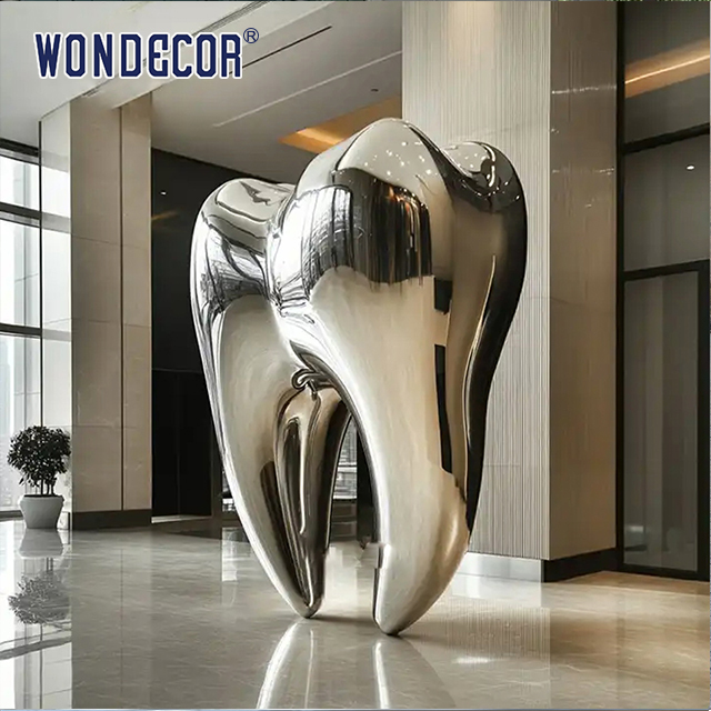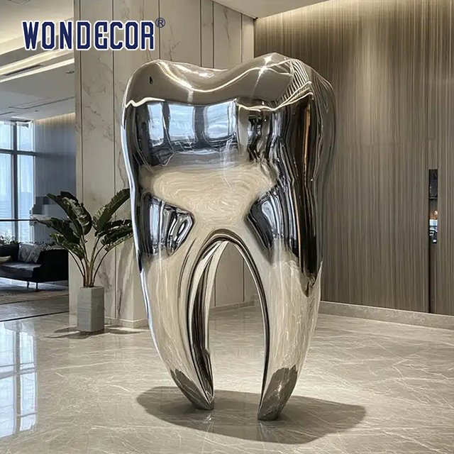 x| নাম | স্বাস্থ্য কেন্দ্র লবি মিরর পালিশ স্টেইনলেস স্টীল দাঁত ভাস্কর্য মূর্তি | রঙ | রৌপ্য |