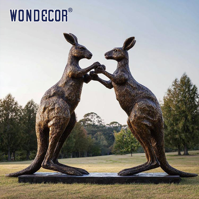 This life-size bronze kangaroo sculpture captures the dynamic energy of fighting kangaroos in exquisite detail. Crafted with precision casting techniques, it serves as an impressive decorative centerpiece for outdoor spaces including parks, gardens, squares, and commercial properties.